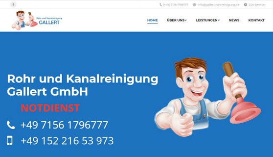 Zollernstraße 30, 71254 DitzingenTelefon: (07156) 17 97 950Rohrreinigung (WC,Bad, Küche, Keller usw), Kanalreinigung, SAT-TV Kamera Fahrzeuge, Dichtheitsprüfung, Ortungsarbeiten (GPS), Kamera-Inspektion, Spezial-Fräsen, Rohrsanierung ohne Aufgraben, Fett-Abscheider Reinigung, Fett-AbsaugungFäkalien-Absaugung, Betonit-Absaugung, Hochdruckspühlen, Dachrinnenreinigung