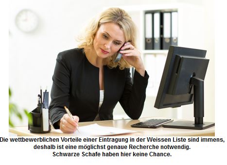 So bietet die Weisse Liste Verbrauchern die nötige Sicherheit vor schwarzen Schafen aus der jeweiligen Branche. Seriöse Unternehmen sind hier unter Gleichen.