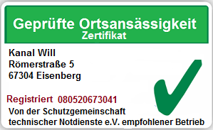 Inh. Peter WillRömerstraße 567304 EisenbergTelefon: (06351) 399601E-Mail: info@kanal-will.de