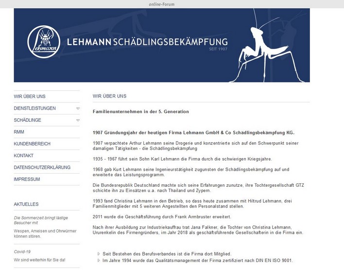 Das Unternehmen wird in der Weissen Liste der Schädlingsbekämpfer im Internet geführt, engagiert sich im Verbraucherschutz vor "schwarzen Schafen" aus der Branche und erhielt das Zertifikat "Geprüfte Ortsansässigkeit".